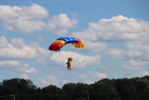 Bei wunderschönen Wetter, hat Peter seine RC Fallschirmspringer im Einsatz.