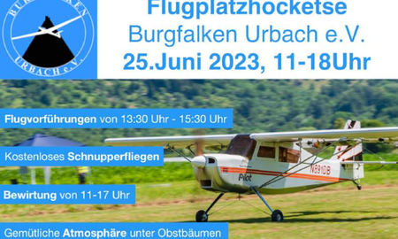am 25. Juni 2023 findet wieder eine Flugplatzhocketse in Urbach statt! Neben interessanten und attraktiven Modellen präsentieren wir uns auch mit einigen Flugvorführungen.